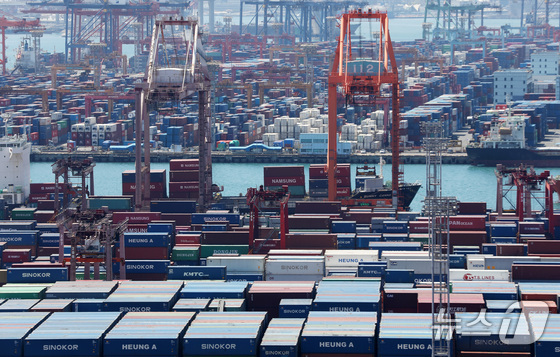 8일 부산항 신선대부두와 감만부두 야적장에 컨테이너가 가득 쌓여 있다. 2026.4.8 뉴스1 윤일지 기자중동 상황 관련 피해·애로사항 접수가 550…