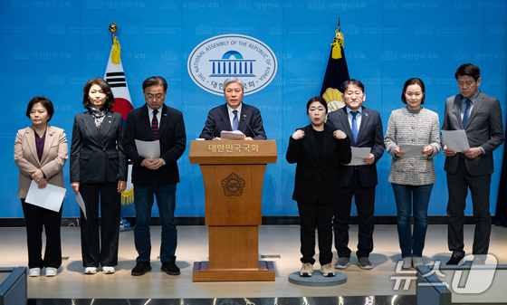 서왕진 조국혁신당 원내대표를 비롯한 의원들이 지난 5일 서울 여의도 국회 소통관에서 내란전담재판부 설치법안 관련 기자회견을 하고 있다. 2025.12.5/뉴스1 &cop…
