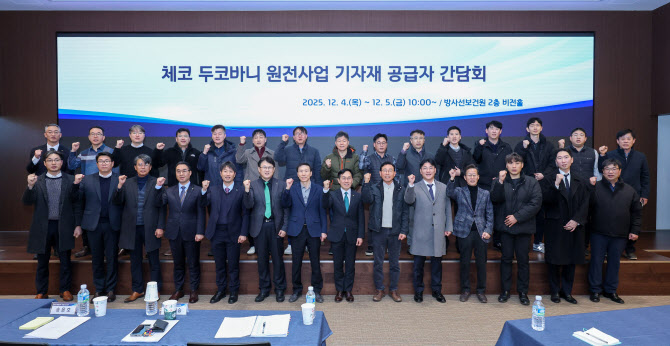 [이데일리 김형욱 기자] 한국수력원자력은 4~5일 서울 한수원 방사선보건원에서 체코 두코바니 원전사업 기자재 공급사 간담회를 열었다고 4일 밝혔다. 한국수력원자력이 4~5일 서울