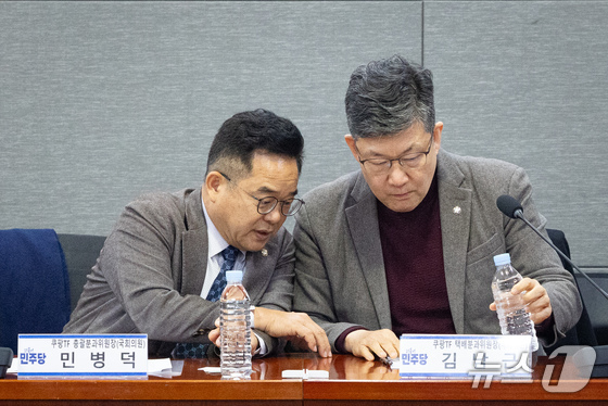 민병덕 더불어민주당 을지로위원장과 김남근 민주당 의원. 2026.2.19 뉴스1 유승관 기자더불어민주당과 정부는 14일 중동전쟁에 따른 건설자재 가격…