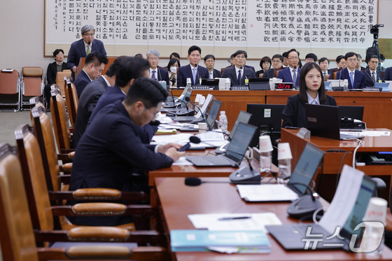 일 서울 여의도 국회 법제사법위원회에서 열린 서울고법·서울중앙지법 등에 대한 국정감사에서 나경원 국민의힘 의원이 이석한 가운데 나 의원의 남편인 김재호 춘천지방법원장…