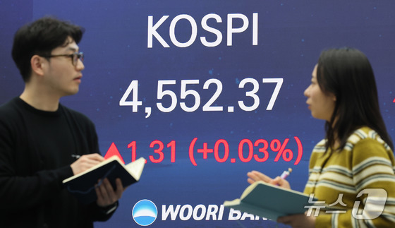 8일 서울 중구 우리은행 본점 딜링룸 전광판에 코스피지수 종가가 나오고 있다. 2026.1.8/뉴스1 News1 박지혜 기자코스피 시장에서 외국인 투…