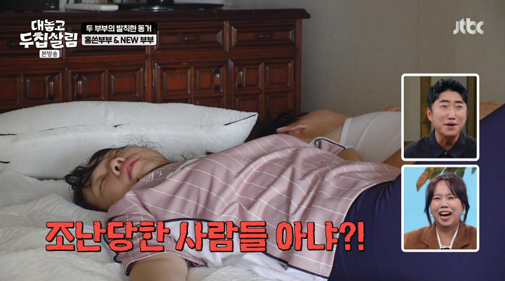 백도빈이 '두집살림'을 찾았다. 18일 방송된 JTBC '대놓고 두집살림'에는 백도빈, 정시아가 출연했다. 이날 홍현희, 제이쓴 부부가 잠에서 아직 깨지 않은 그때 의문의 남성이