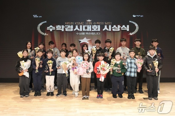 지난 2월 7일 교원투어빌딩 콘서트홀에서 열린 '제 5회 KSMC 수학경시대회' 시상식에서수상자들이 단체사진을 찍고 있다. 교원 제공초중등 수학…