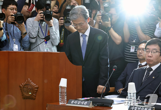 [뉴스1 PICK]국회 법사위 출석한 조희대 대법원장...'이석' 못하고 출석 중