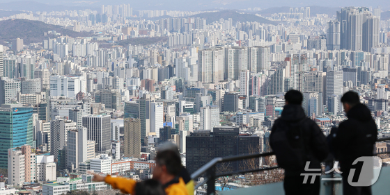 서울 중구 남산에서 바라본 서울시내 아파트 단지 모습. 2026.2.23 뉴스1 오대일 기자이재명 대통령이 다주택자의 '관행적 대출 연장'을 지적하면…