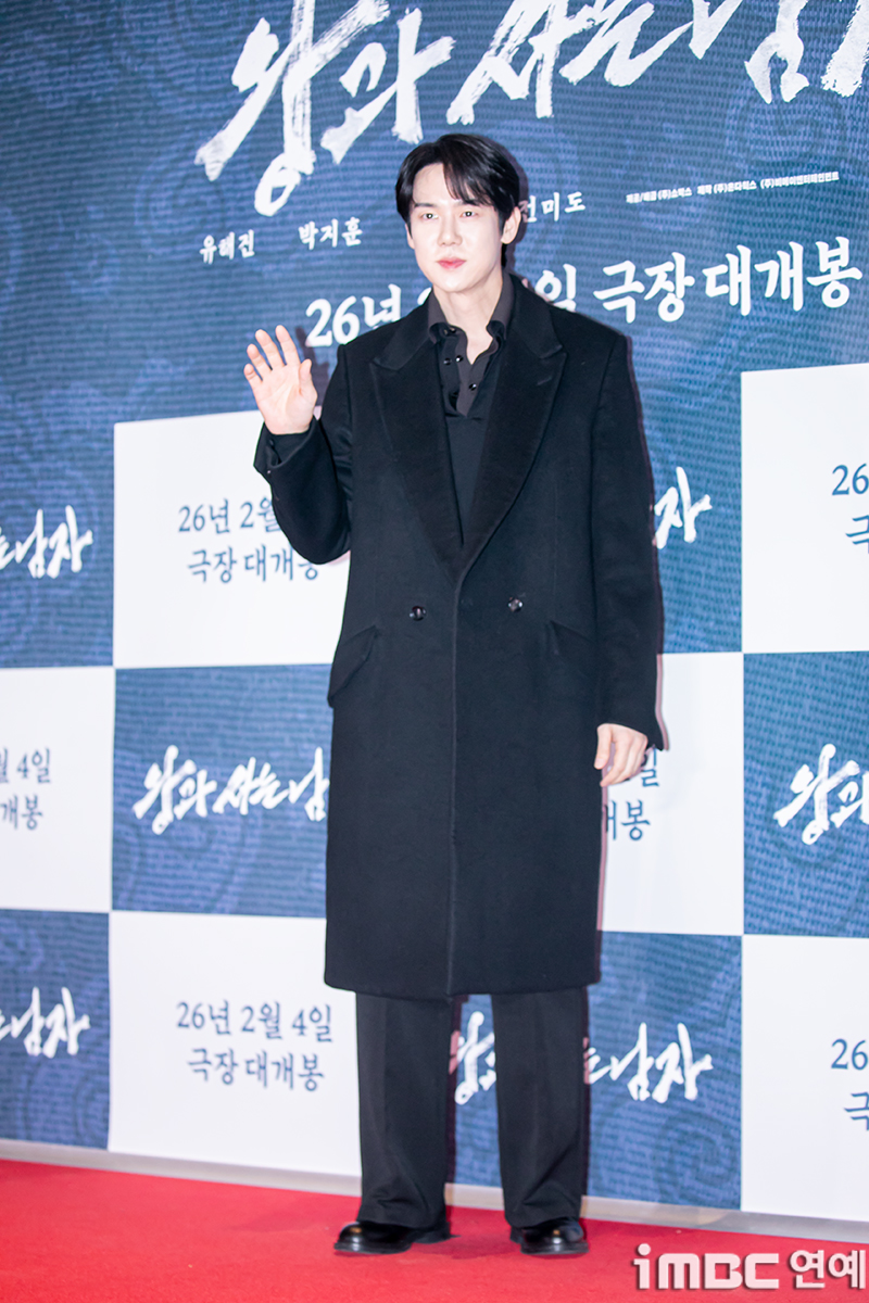 배우 유연석이 27일 오후 서울 잠실 롯데시네마 월드타워점에서 열린 영화 ‘왕과 사는 남자’ VIP시사회에 참석해 포즈를 취하고 있다. ‘왕과 사는 남자’는 1457년 청령포, 마