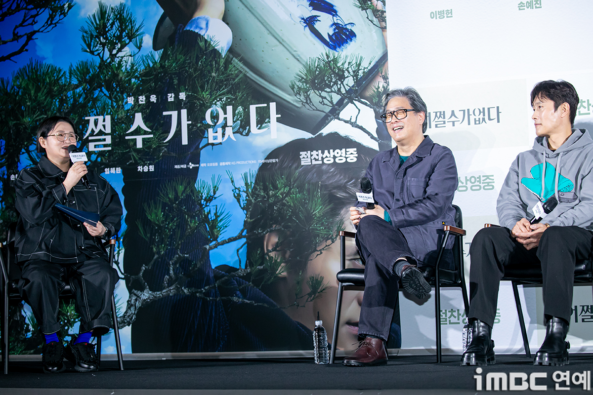 MC 개그우먼 김신영, 박찬욱 감독이 8일 오후 서울 용산CGV에서 열린 영화 ‘어쩔수가 없다’ 관객 감사 팬 이벤트 행사에 참석해 소통하고 있다. 이날 ‘어쩔수가 없다’ 관객 감