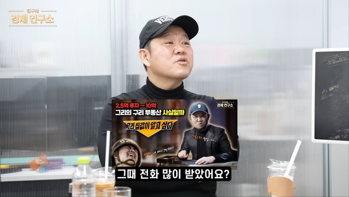 (MHN 박선하 기자) 해병대 전역 후 복귀한 그리가 '부동산 대박' 후일담을 전했다. 최근 유튜브 채널 '그리구라'에는 해병대 제대한 그리가 김구라와 함께 재테크에 관해 이야기하