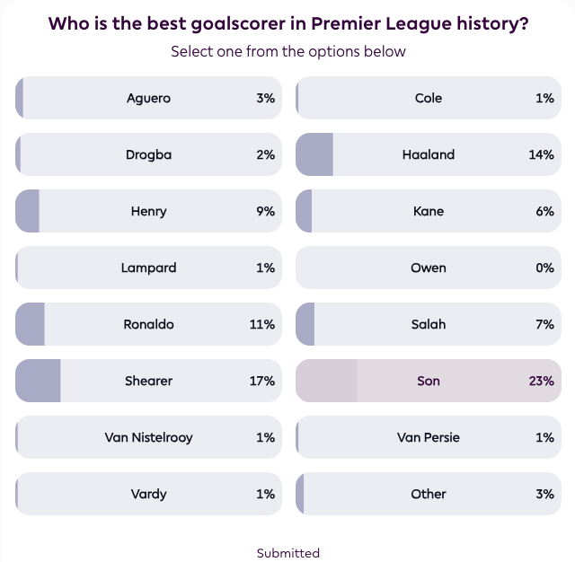 손흥민, 프리미어리그 전설들과 어깨 나란히… 팬 투표 3일째 1위