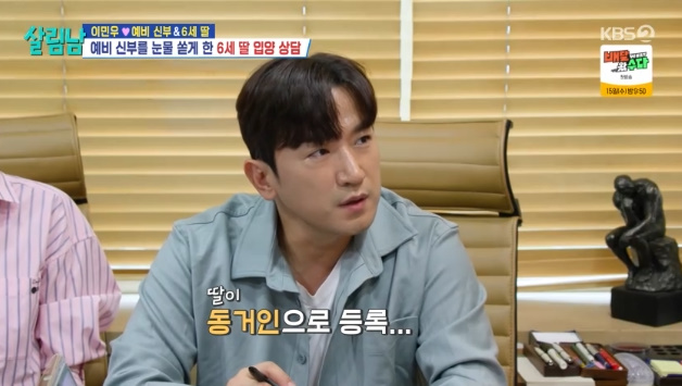<방송 시청 후 작성된 리뷰 기사입니다.> [OSEN=김나연 기자] 신화 이민우가 띠동갑 연하의 재일교포와 결혼을 앞두고 딸의 입양 문제에 처했다. 11일 방송된 KBS2 '살림하