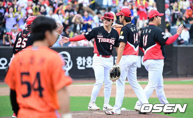 [OSEN=대전, 조은혜 기자] 프로야구 KIA 타이거즈가 한화 이글스와의 주말 3연전을 스윕하고 4연승을 질주했다. 이범호 감독이 이끄는 KIA는 12일 대전 한화생명 볼파크에서