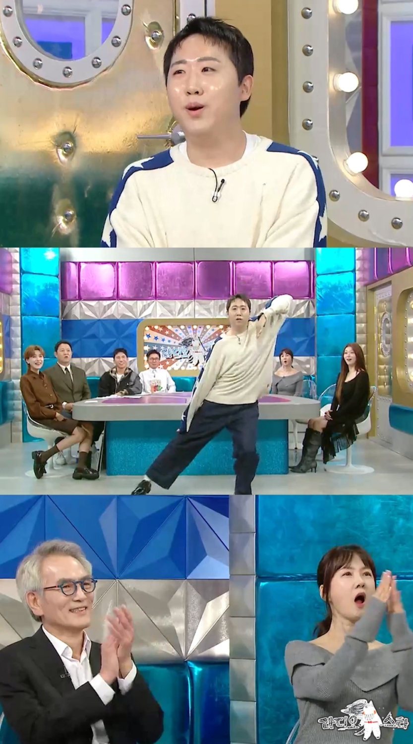 개그맨 이재율이 ‘라디오스타’에서 ‘댄스-노래-박수’ 개인기 3종세트를 선보이며 ‘조롱의 귀재’ 본색을 드러낸다. 선배 개그맨들의 스타일을 분석한 토크로 스튜디오를 웃음바다로 만들