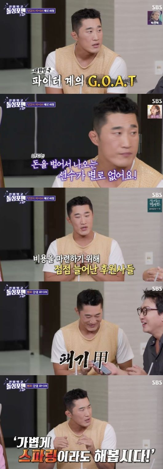 방송 시청 후 작성된 리뷰 기사입니다. [OSEN=임혜영 기자] 김동현이 일반인들에게 대결 신청을 받는다고 밝혔다. 7일 방송된 SBS ‘신발 벗고 돌싱포맨’(이하 돌싱포맨)은 ‘