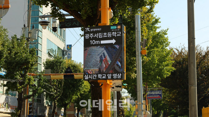 [이데일리 김지우 기자] 현대백화점그룹이 초록우산어린이재단과 손잡고 어린이들의 안전한 등하굣길 만들기에 나섰다. 광주광역시 북구 서림초등학교 앞에 설치된 세이프스쿨 솔루션 (사진=
