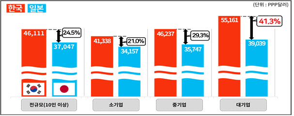 韓 대기업 대졸 초임, 日보다 41.3%·대만보다 37.0% 높아