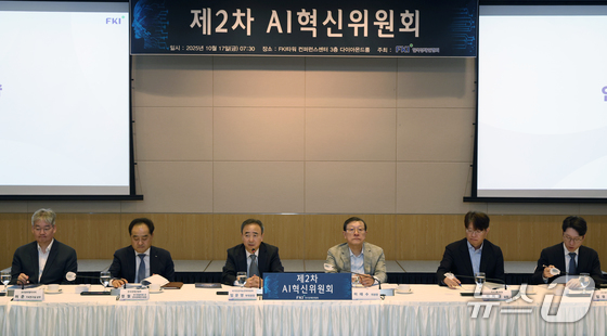 임문영 대통령 직속 국가인공지능전략위원회 부위원장왼쪽 세 번째이 17일 오전 서울 여의도 FKI 컨퍼런스센터에서 열린 AI 혁신위원회 2차 회의에서 인…