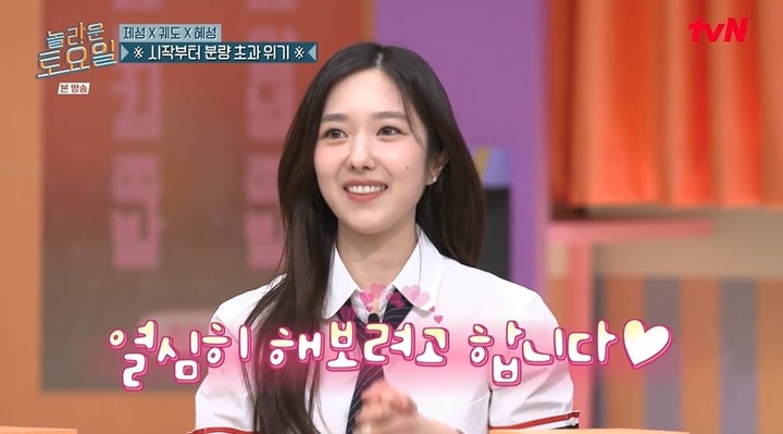 (MHN 장창환 기자) 방송인 이혜성이 가수 한해와의 특별한 관계를 언급해 눈길을 끌었다. 31일 방송된 tvN 예능 '놀라운 토요일'은 브레인 특집으로 꾸며진 가운데 이혜성, 황