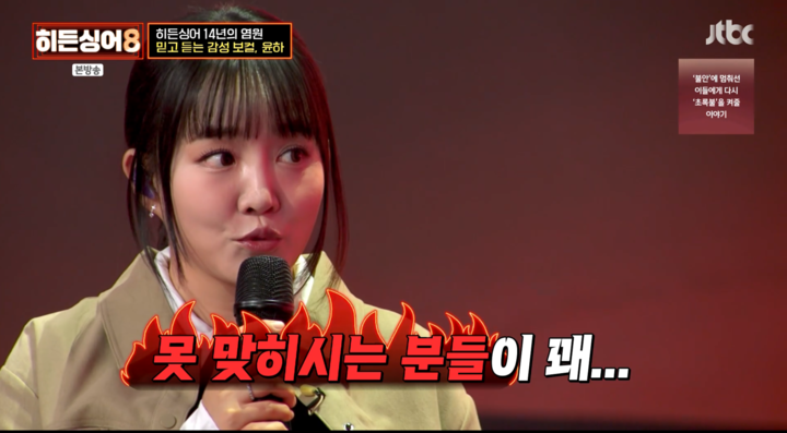(MHN 김설 기자) 가수 윤하가 ‘히든싱어8’의 주인공으로 출연해 일본 데뷔부터 한국 활동의 시작점까지 파란만장한 음악 인생을 되짚었다. 7일 방송된 JTBC ‘히든싱어8’에는