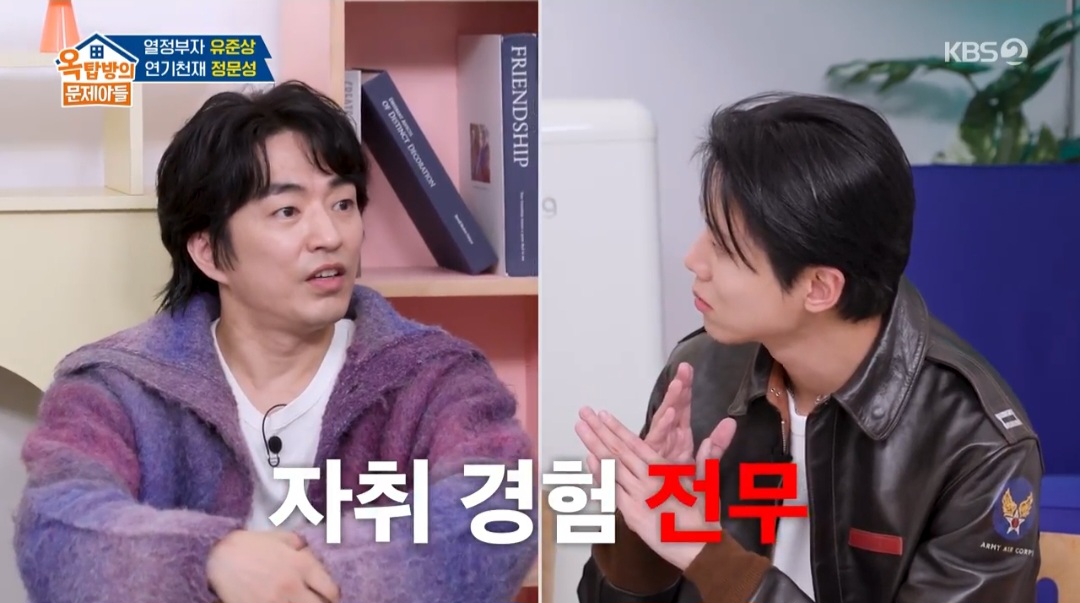 배우 정문성이 효자 면모를 드러냈다. 11월 20일 방송된 KBS 2TV 예능 ‘옥탑방의 문제아들’에서는 뮤지컬 ‘비하인드 더 문’에서 열연 중인 배우 유준상, 정문성이 출연해 남