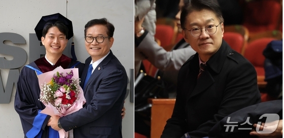 송영길 전 더불어민주당 대표는 23일 김민석 국무총리가 인천계양구에서 펼친 국정설명회에 '아들의 고스쿨 졸업식'때문에 부득이하게 참석하지 못했다고 밝혔다. 오른쪽은 송…