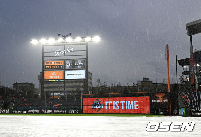 [OSEN=대전, 한용섭 기자] 또 우천 취소다. 준플레이오프에 이어 플레이오프도 가을비로 인한 우천 취소 경기가 발생했다. 17일 오후 6시반 대전 한화생명 볼파크에서 열릴 예정