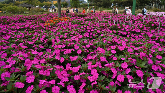 일 경남 거창군 남상면 거창창포원 곳곳에 코스모스, 황화 코스모스, 산파챈스 등 가을꽃이 활짝 피어있다.거창군 제공. 재판매 및 DB 금지 …