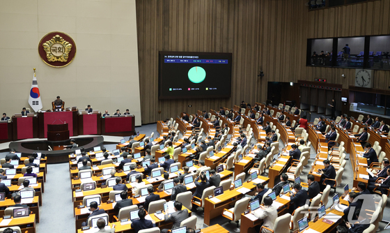 31일 서울 여의도 국회에서 열린 제433회국회임시회 제3차 본회의에 공휴일에 관한 법률 일부개정법률안대안이 통과되고 있다. 2026…