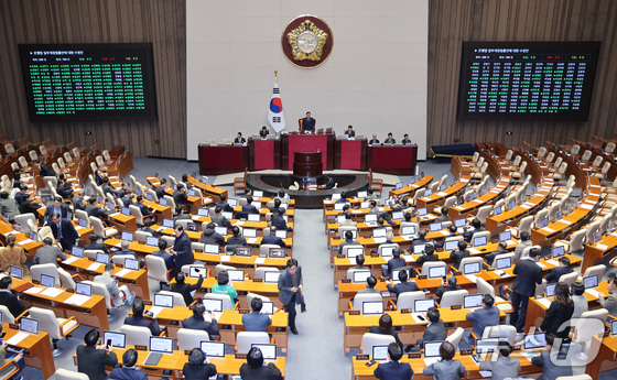13일 서울 여의도 국회에서 열린 제430회국회임시회 제1차 본회의에서 은행법 일부개정법률안이 가결되고 있다. 2025.12.13/뉴스1 …