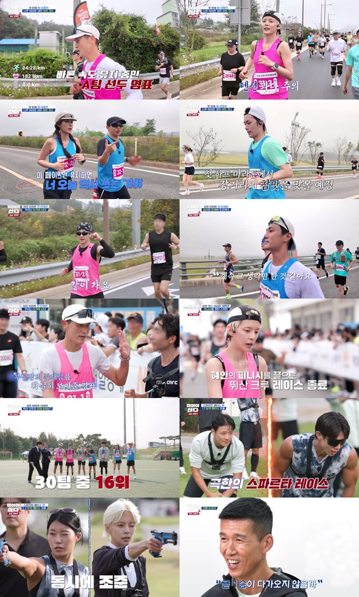 ‘뛰어야 산다 시즌2’의 ‘뛰산 크루’가 첫 단체전에 도전, 하프 마라톤 레이스를 완주한 끝에 전체 30개 팀 중 16위를 기록하는 값진 성과를 거뒀다. 8일(월) 방송된 MBN