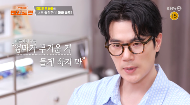 방송 시청 후 작성된 리뷰 기사입니다. [OSEN=박하영 기자] ‘신상출시 편스토랑’ 김강우가 두 아들도 인정할 만큼 아내를 향한 애정을 드러냈다. 24일 방송된 KBS 2TV 예