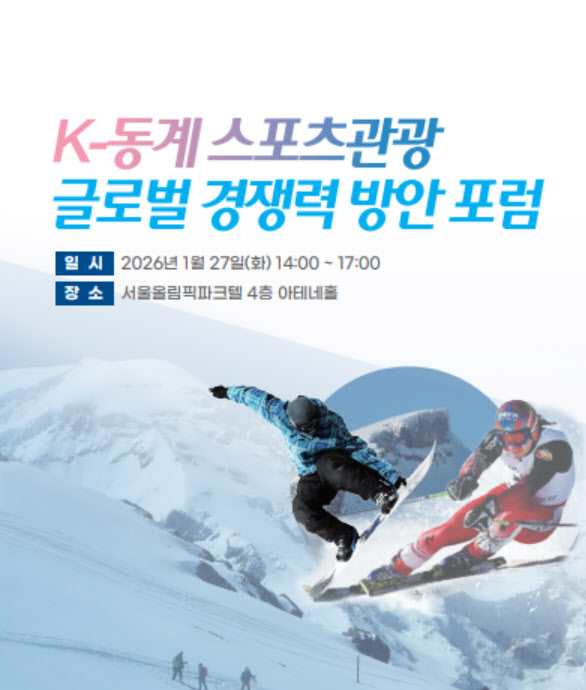 [이데일리 스타in 이석무 기자] 대한민국 동계 스포츠관광의 중·장기 전략을 논의하는 ‘K-동계 스포츠관광 글로벌 경쟁력 방안 포럼’이 27일 오후 2시 서울올림픽파크텔 4층 아테