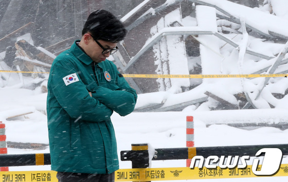 2024년 1월 23일 당시 한동훈 국민의힘 비상대책위원장이 화재가 발생한 충남 서천 특화시장을 찾아 눈을 맞으면 윤석열 대통령 도착을 기다리고 있다. 2024.1.2…