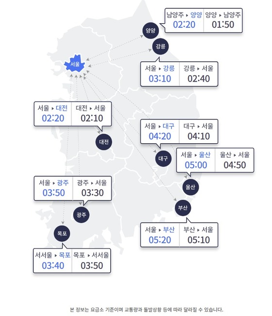 27일 오전 10시 기준 전국 주요 도시와 서울 사이 예상 고속도로 이동 시간한국도로공사 홈페이지 갈무리올해 마지막 토요일인 27일, 계속되는 …