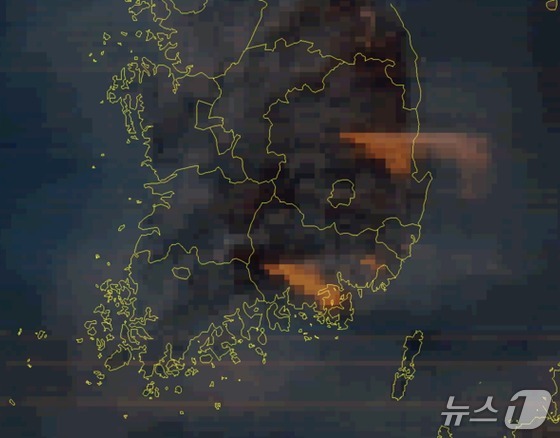 위성으로 관측한 3월 23일 내륙 산불 모습기후부 제공 뉴스1대형 산불과 화산 분화로 발생한 대기오염물질의 이동과 확산 양상이 위성…