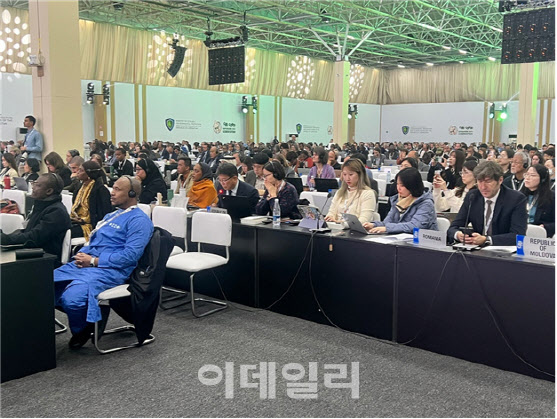 오늘(28일) 서울 롯데호텔에서 열린 ‘비짓 아스타나 관광청 로드쇼’에서 아르템 크바슉 아스타나시 관광개발센터 이사회 의장이 발표를 하고 있다. (사진=이민하 기자) [이데일리 이