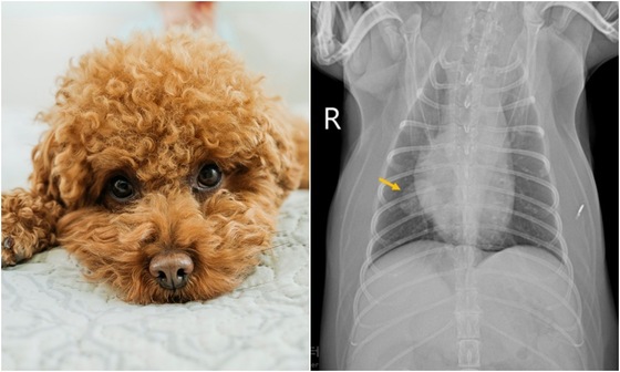 본동물의료센터는 폐종양이 발견된 15세 푸들에게 폐엽절제술을 시행해 성공적으로 치료했다고 밝혔다왼쪽 사진 클립아트코리아, 본동물의료센터 제공. &cop…