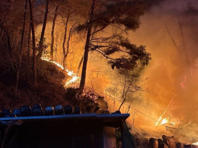 [이데일리 채나연 기자] 윤호중 행정안전부 장관이 20일 강원 인제에서 발생한 산불이 확산할 우려가 있다며 관계 기관에 총력 대응을 지시했다. 20일 오후 5시 23분경 강원 인제