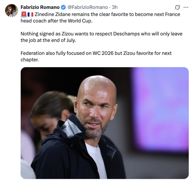 Here We Go! '프랑스 감독 부임 확정적' 지단, 낭만 미쳤다... '아직 최종 사인 안 해. WC 앞둔 현 감독에 예의 아냐'