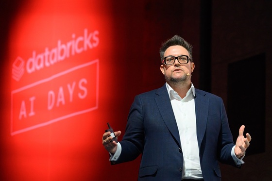 닉 에어스 데이터브릭스 아태 및 일본 지역 필드 엔지니어링 담당 부사장이 1일 서울 강남구 코엑스에서 개최된 'AI 데이즈 서울'에서 기조연설을 하고 있다. 데…