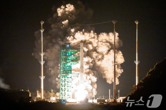 한국형 발사체 누리호KSLV-Ⅱ가 27일 새벽 전남 고흥군 나로우주센터에서 4차 발사를 맞아 우주로 날아오르고 있다. 차세대중형위성 3호1기&…