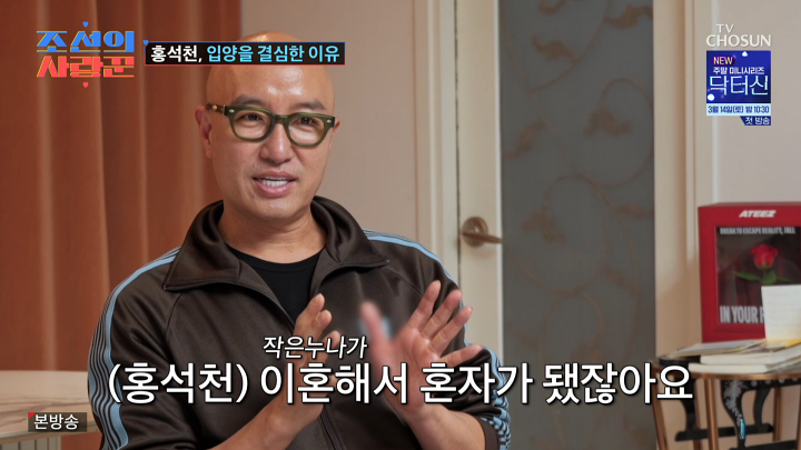 홍석천이 조카를 입양한 이유를 밝혔다. 9일 방송된 TV CHOSUN '조선의 사랑꾼'에는 방송인 홍석천이 출연했다. 이날 홍석천은 "제게 딸과 아들이 있는데 첫 번째 딸이 시집간