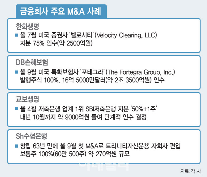 "강점 더 키우고 약점 보완하고"…금융사, 앞다퉈 M&A