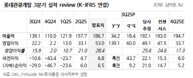 롯데관광개발, 두드러진 수익성 개선…3Q 어닝서프라이즈-NH