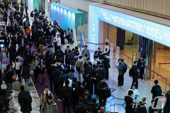 5일 서울 강남구 코엑스에서 열린 ‘인터배터리 2025’ 전시장 앞이 개막 전 입장을 기다리는 관람객으로 붐비고 있다. 올해로 13회를 맞이하는 역대 최대규모의 배터리 …
