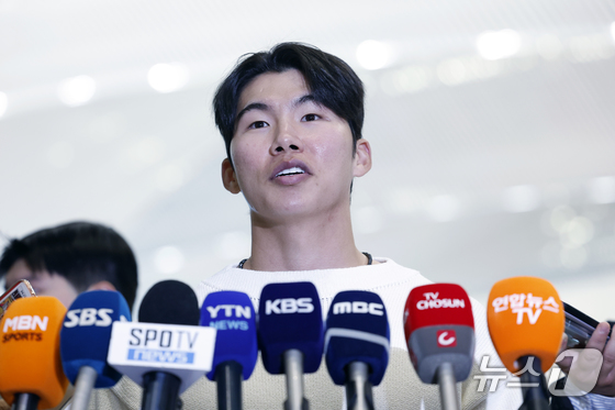 메이저리그MLB LA 다저스에서 뛰는 김혜성이 21일 오후 인천국제공항 2터미널에서 출국 전 인터뷰를 하고 있다. 빅리그 데뷔 첫해부터 월드시리즈 우승…