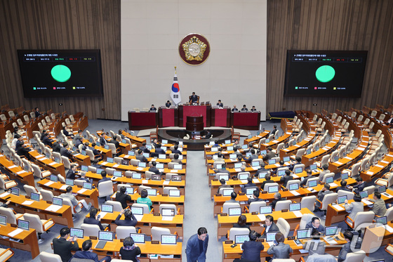 13일 서울 여의도 국회에서 열린 제430회국회임시회 제1차 본회의에서 은행법 일부개정법률안이 가결되고 있다. News1 신웅수 기자…