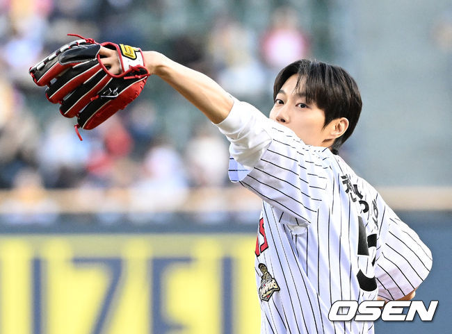 [OSEN=이대선 기자] 그룹 하이라이트(HIGHLIGHT)의 리더 윤두준이 잠실야구장 마운드에서 야구팬과 K팝 팬 모두의 마음을 훔쳤다. 윤두준은 지난 15일 서울 잠실야구장에서