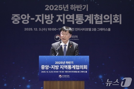 국가데이터처는 3일 대전 유성구 인터시티호텔에서 '2025년 하반기 중앙-지방 지역통계협의회'를 열었다. 사진은 인사말을 하고 있는 안형준 국가데이터처장. 국가…