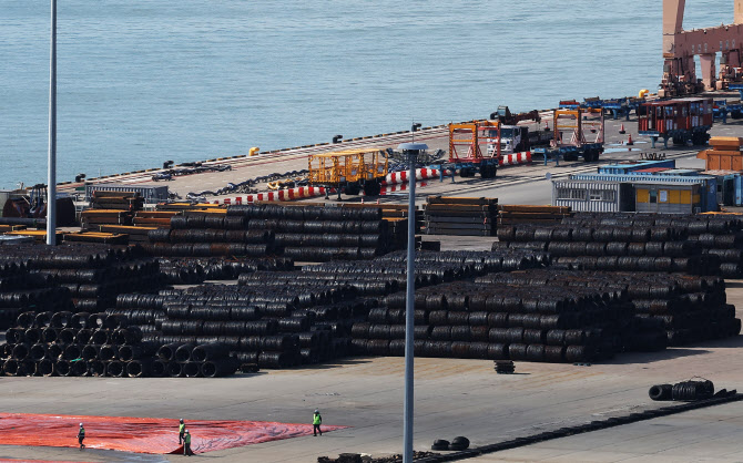 지난 8일 경기도 평택항에 철강 제품이 쌓여있는 모습 (사진 = 연합뉴스) [이데일리 김한영 기자] 여야가 당론으로 추진해온 이른바 ‘K-스틸법’(철강산업 경쟁력 강화 및 녹색철강